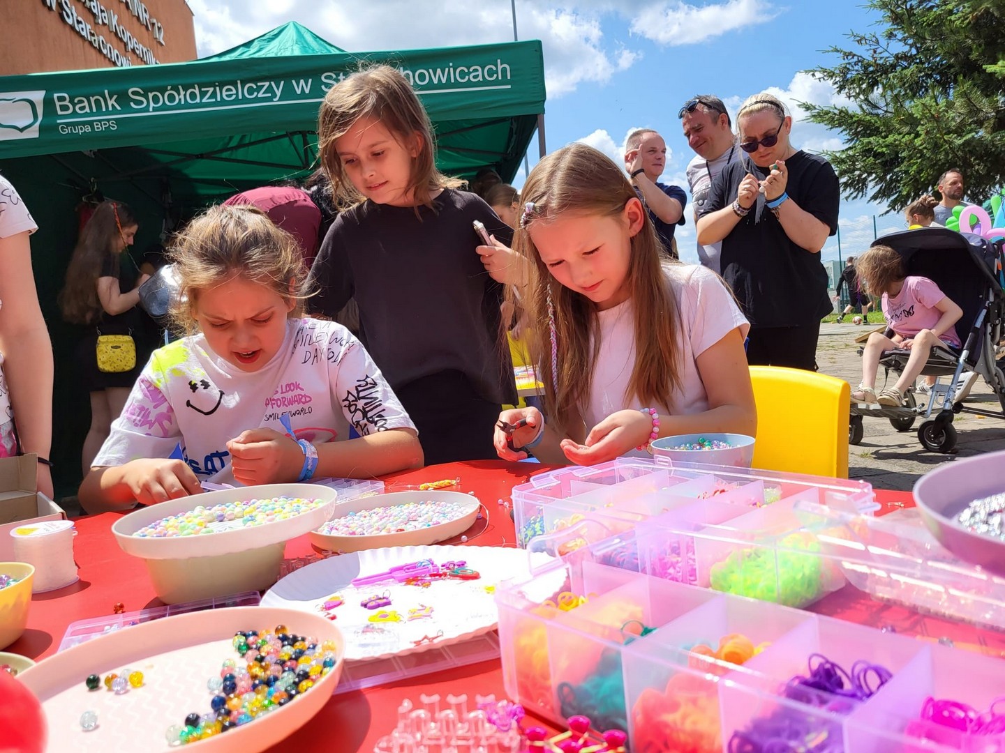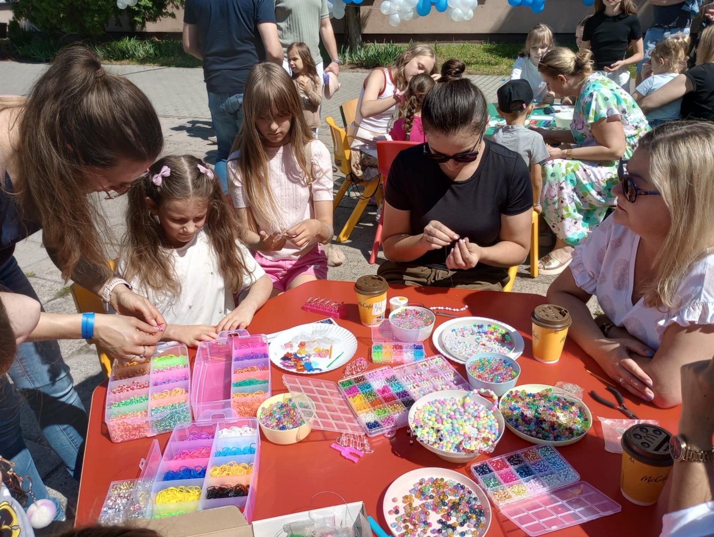 Na uczestników czekało wiele atrakcji. Najmłodsi z entuzjazmem korzystali z dmuchańców, a dużym zainteresowaniem cieszyły się także stanowiska z malowaniem twarzy i kamieni, zaplataniem kolorowych warkoczyków oraz warsztatami tworzenia biżuterii. Zarówno dzieci, jak i dorośli mogli spróbować swoich sił w grach dawnych lat, które przywołały wspomnienia