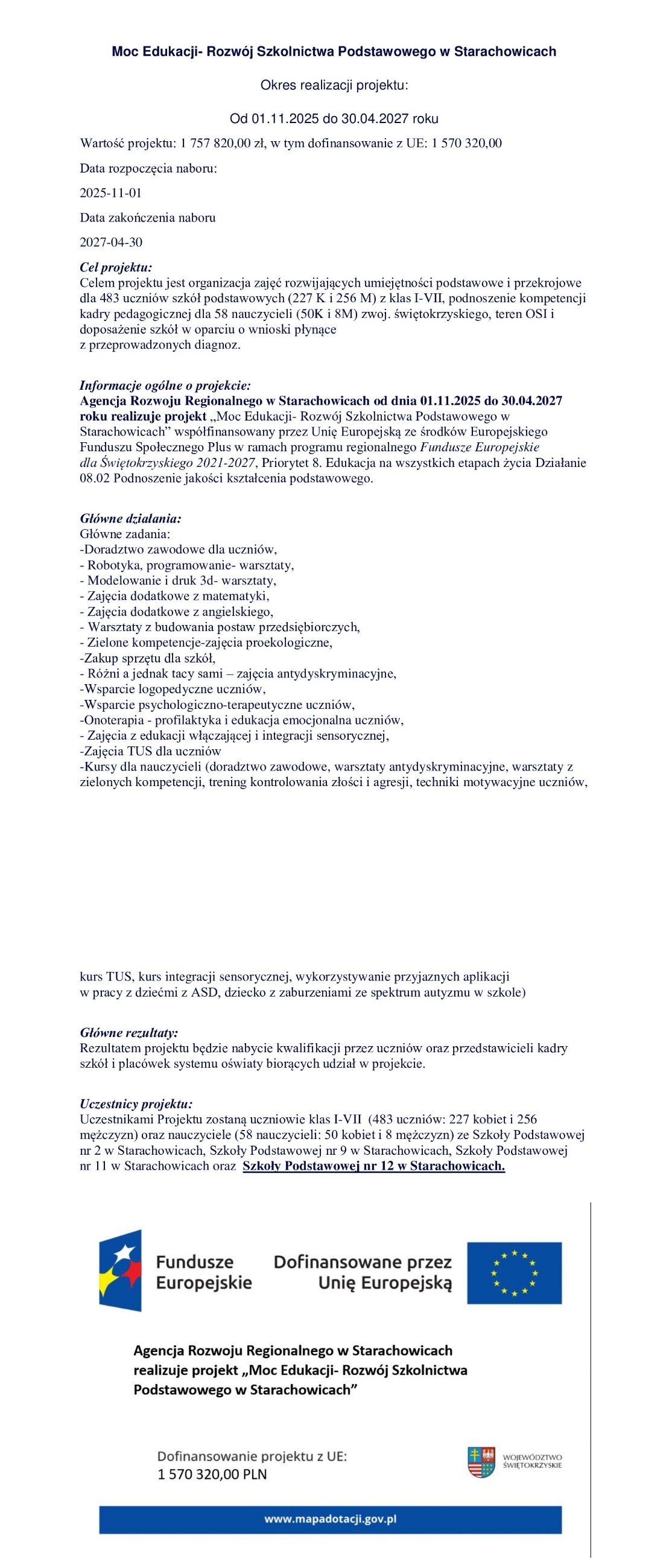 MOC EDUKACJI - ROZWÓJ SZKOLNICTWA PODSTAWOWEGO W STARACHOWICACH